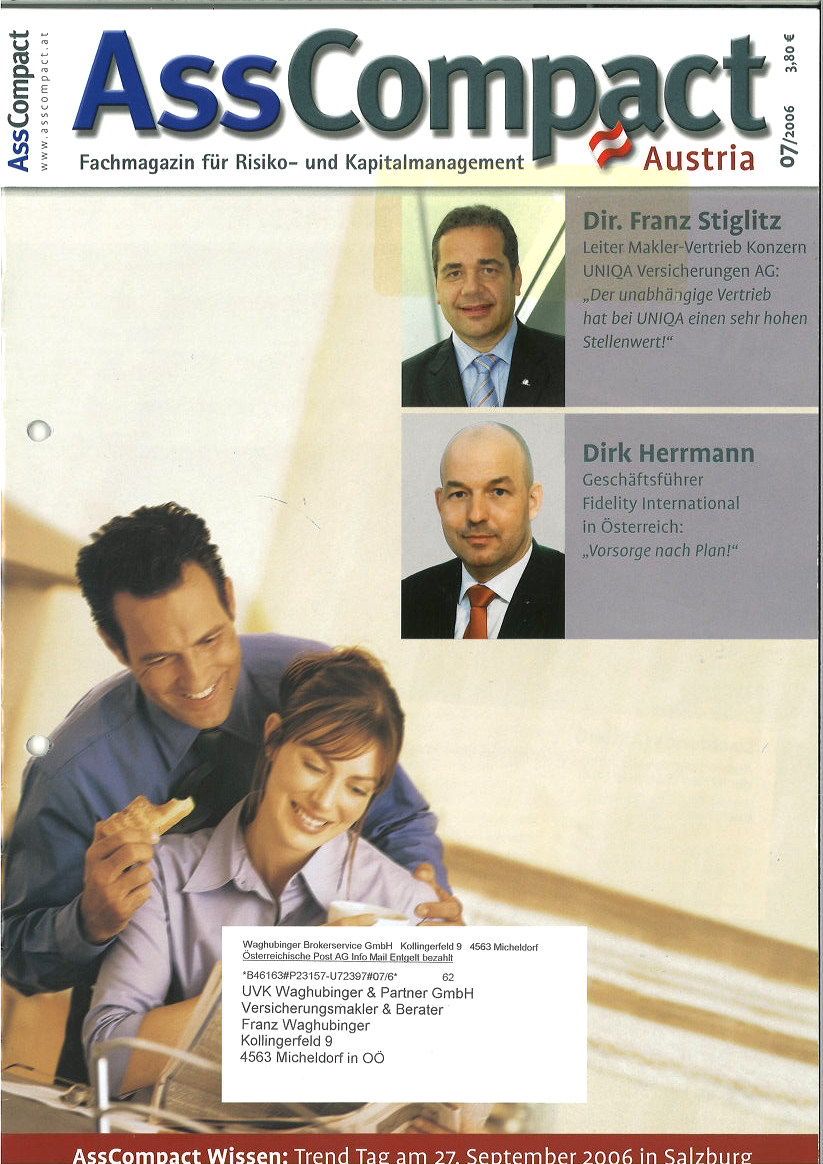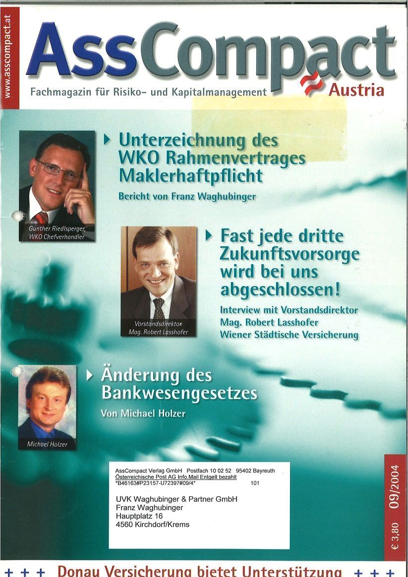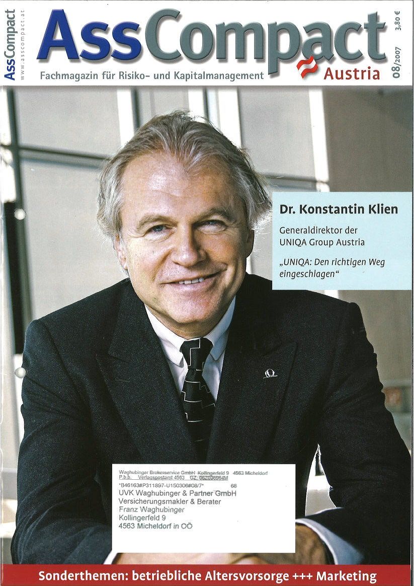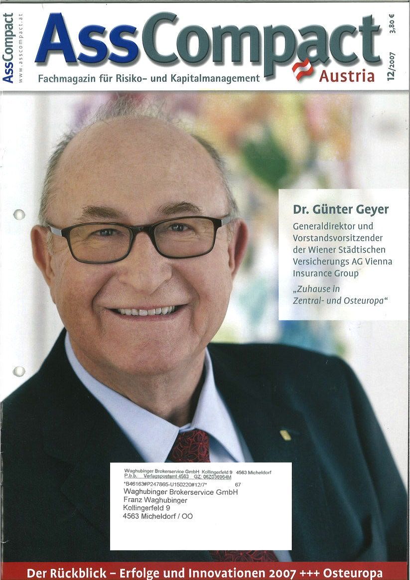 Während seiner Tätigkeiten im Berufsverband ÖVM lernte Franz Waghubinger Dieter Knörrer, den Herausgeber von AssCompact Deutschland, kennen. „Knörrer wollte AssCompact auch in Österreich etablieren, und ich habe ihn in Wien mit meinen österreichischen Kontakten in der Branche bekannt gemacht“, berichtet Waghubinger.