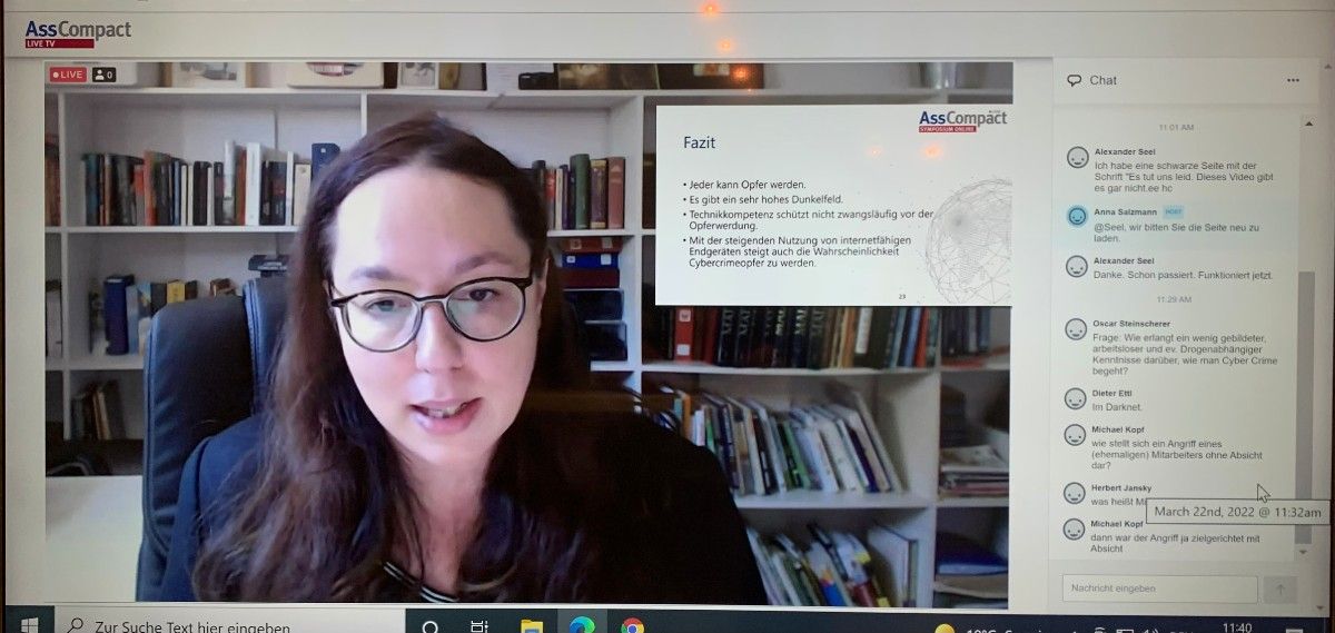 Mit knapp 200 Zuseherinnen und Zusehern ging heuer das AssCompact ONLINE Gewerbesymposium erfolgreich über die Bühne – insgesamt waren rund 500 Teilnehmerinnen und Teilnehmer beim Gewerbesymposium 2022 mit dabei und sicherten sich neben den wertvollen IDD-Stunden auch ein nützliches Wissensupdate zum Thema „Cybercrime“. Sechs ausgewiesene Experten referierten live an allen drei Übertragungstagen im AssCompact TV-Studio in Wien. Dabei konnten die Teilnehmer insgesamt sechs UNABHÄNGIGE IDD-Weiterbildungsstunden sammeln.