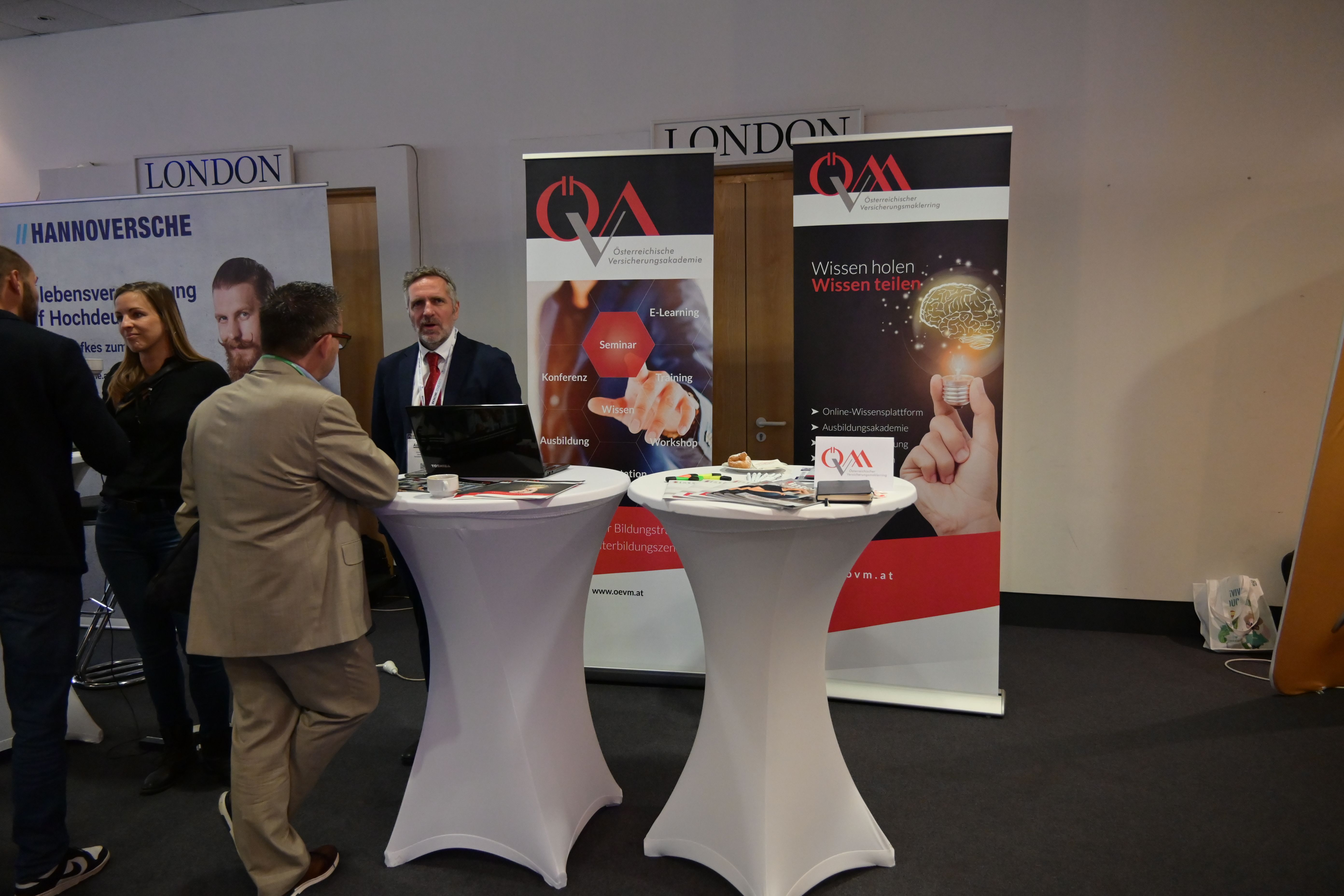 Zwischen den Vorträgen bot sich den Besucherinnen und Besuchern die Gelegenheit, sich im Kongressbereich mit den Partnergesellschaften auszutauschen, Fragen zu stellen und sich über aktuelle Entwicklungen in der Versicherungswirtschaft zu informieren. Der direkte Austausch ermöglichte es den Teilnehmern, ihr Netzwerk zu erweitern und neue Einblicke zu gewinnen, um ihr Wissen und ihre Fachkenntnisse zu vertiefen.
