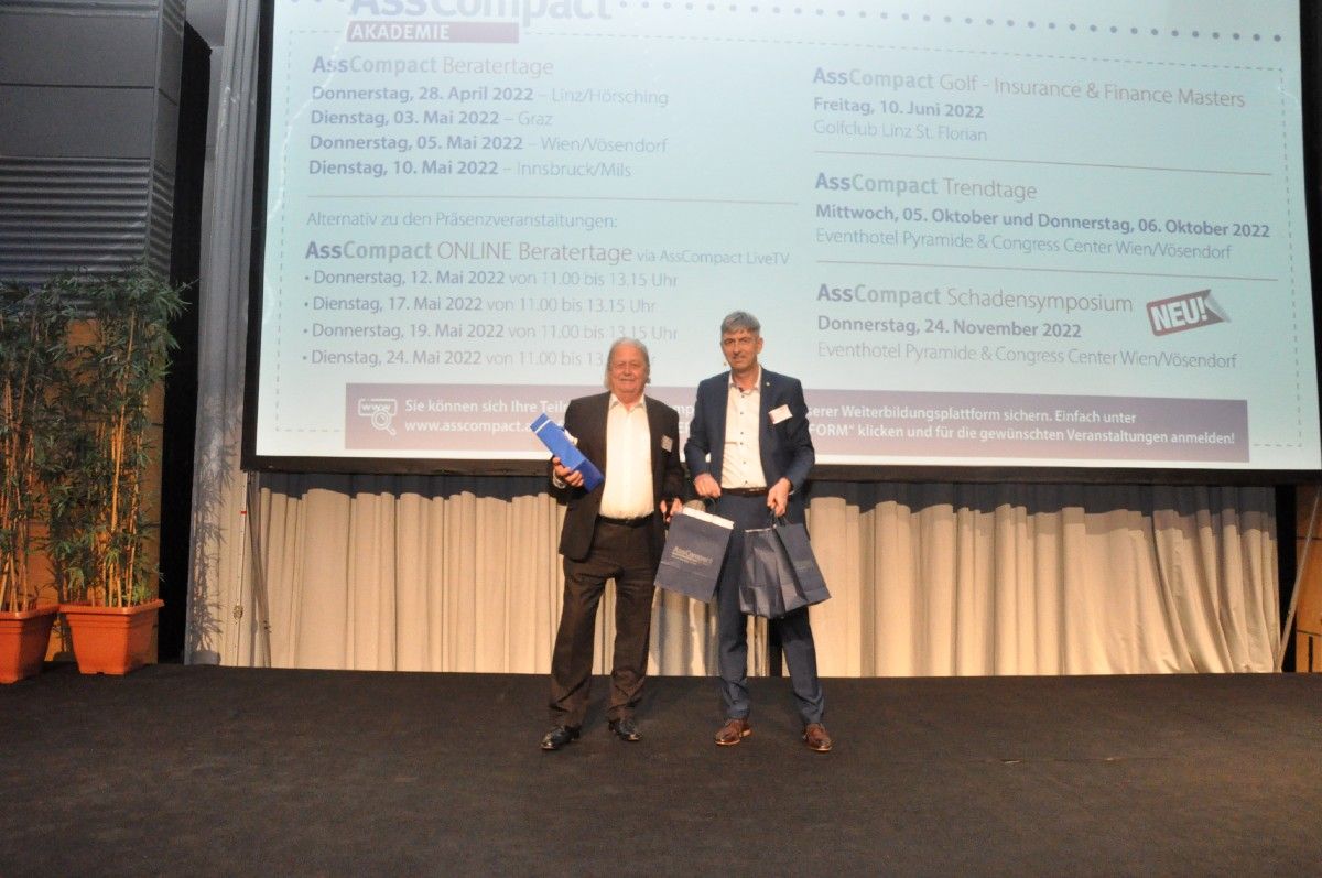 Am Schluss fand die bereits traditionelle Verlosung von Preisen statt. Der Hauptpreis, ein Wellnessgutschein des 4-Sterne-Hotels Moselebauer in St. Leonhard im Lavanttal im Wert von 400 Euro sowie ein kostenloses Ticket für das AssCompact Gewerbeversicherungssymposium 2023, ging an Erich Dworal.