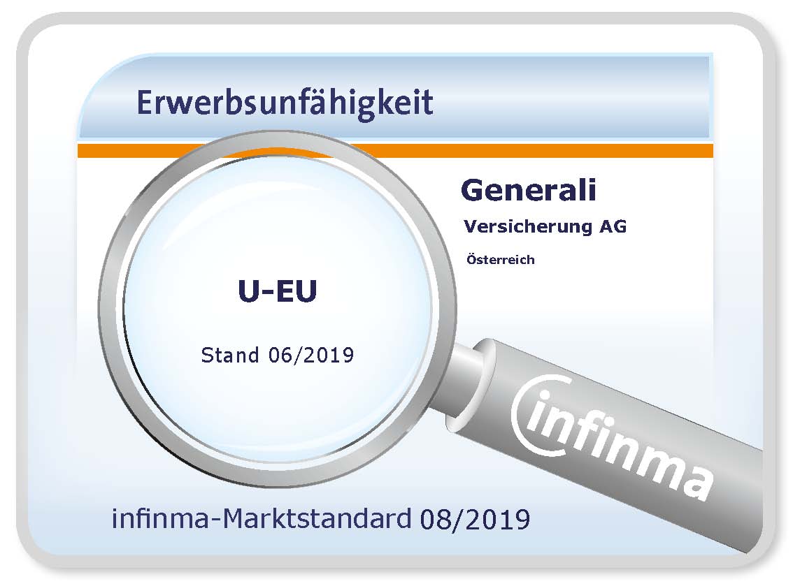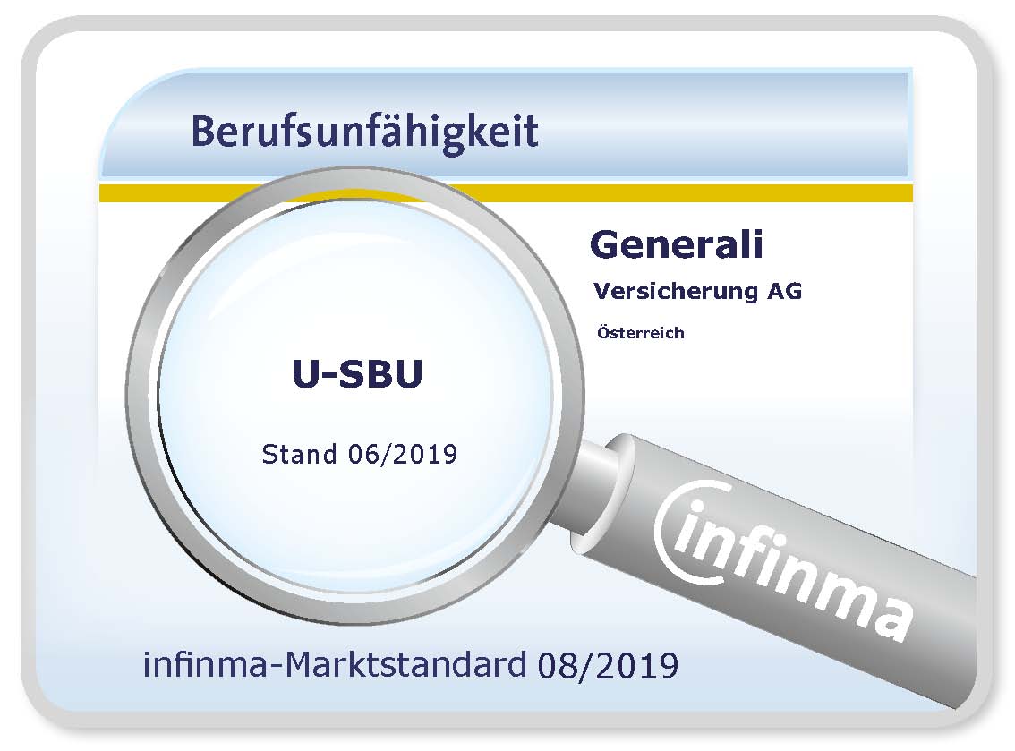 Ebenso hat Infinma, Institut für Finanz-Markt-Analyse, am österreichischen Versicherungsmarkt die Tarife in der Erwerbs- und in der selbstständigen Berufsunfähigkeitsversicherung (SBU) geprüft. Die Generali erfüllt mit ihren Produkten die Infinma Marktstandards vollinhaltlich.