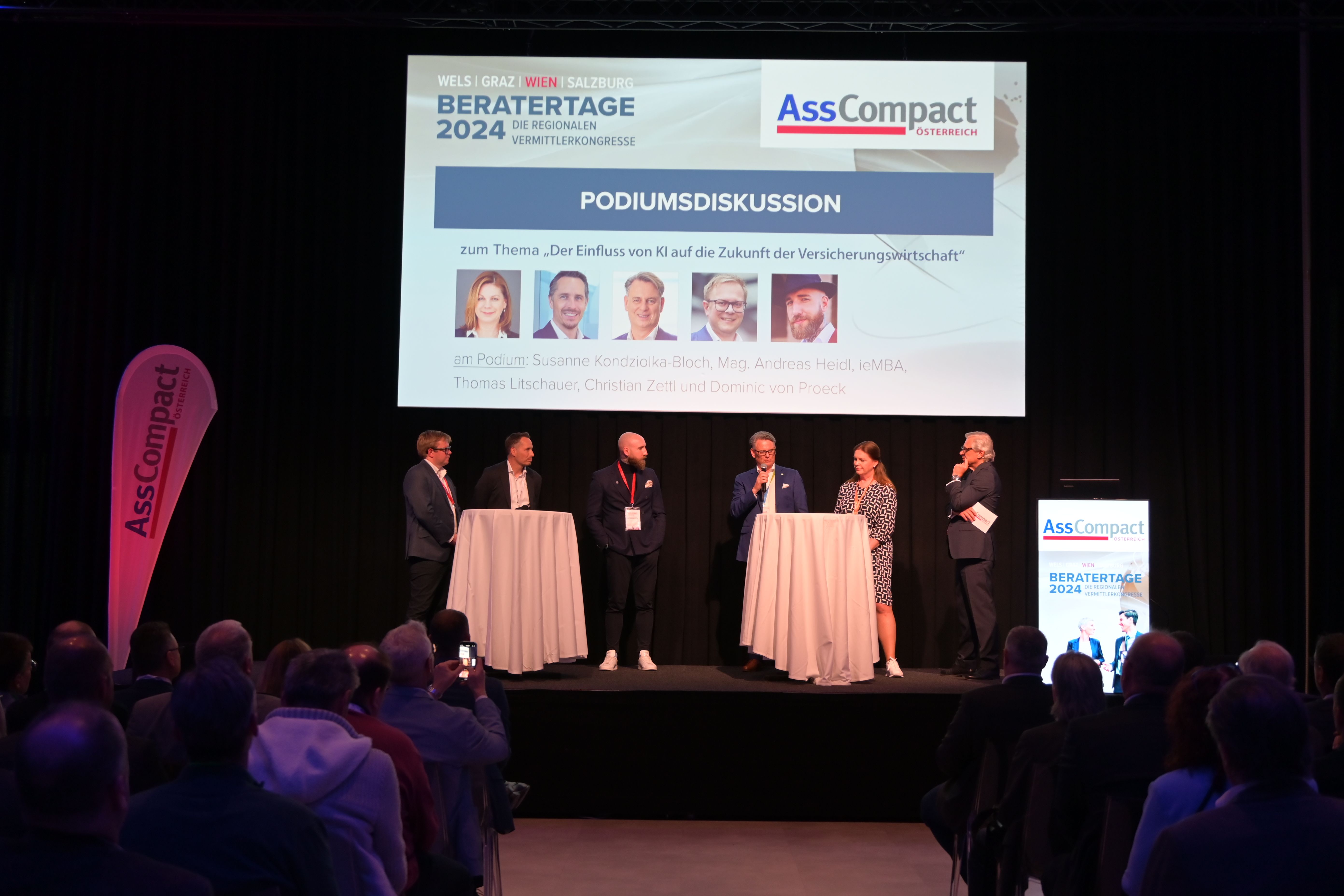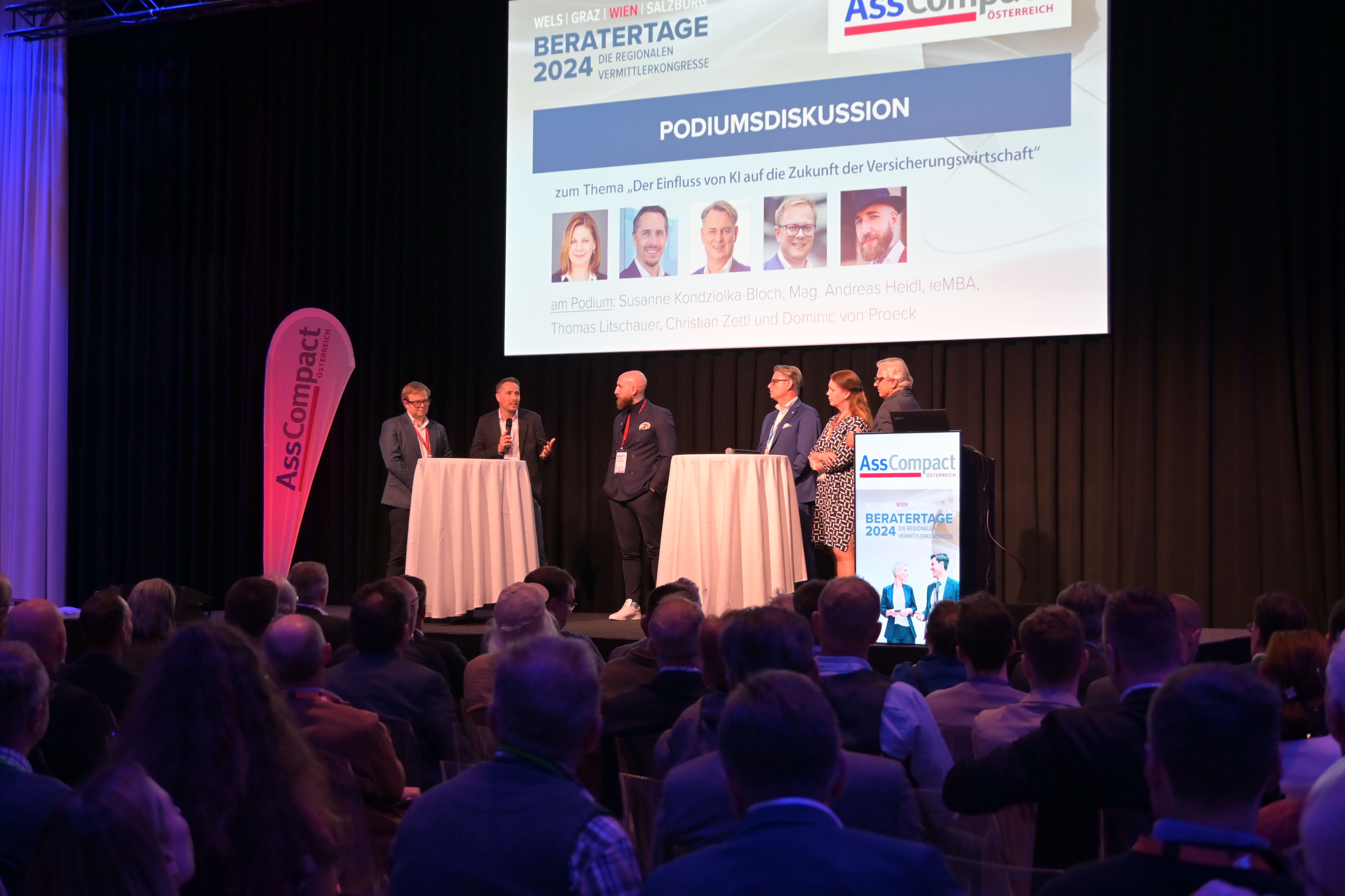 Der gestrige AssCompact Beratertag im Hotel ARIANA in Wien bot neben zwei spannenden Keynote-Vorträgen, eine anregende Podiumsdiskussion zum Thema „Der Einfluss von Künstlicher Intelligenz auf die Zukunft der Versicherungswirtschaft“ sowie aktuelle Updates aus der Standesvertretung. Die über 300 Teilnehmerinnen und Teilnehmer hatten dabei die Gelegenheit, einige wertwolle Weiterbildungsstunden zu sammeln und sich zudem bei zahlreichen Impulsvorträgen über die neuesten Entwicklungen in Produkten und Services der Versicherungsgesellschaften zu informieren.